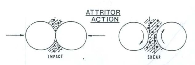 一般來(lái)說(shuō),攪拌臂的末端線速度是3-5 m/s,但“HSA”(新設(shè)計(jì)的高速攪拌磨)的運(yùn)行速度要快4-5倍。攪拌磨中使用的介質(zhì)尺寸為2毫米-10毫米。陶瓷工業(yè)中使用的介質(zhì)類型包括氧化鋁、氧化鋯、硅酸鋯、滑石、氮化硅、碳化硅、碳化鎢、莫來(lái)石和玻璃。隨著速度(臂尖速度)和質(zhì)量(磨介重量)的結(jié)合,研磨作用產(chǎn)生強(qiáng)大的沖擊力和剪切力(參見(jiàn)圖3)。這種結(jié)合的動(dòng)量非常有效的減小了物料的尺寸。
