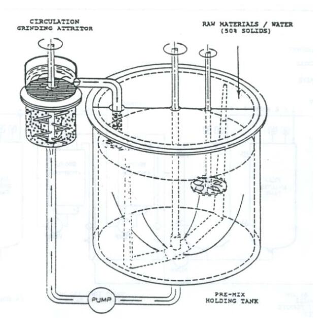 使用批量式SL攪拌磨進(jìn)行兩步濕式研磨(參見(jiàn)圖8)。