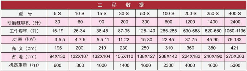 批量式生產(chǎn)用攪拌磨的代號(hào)為S型(standard)。若選用特制形狀的“L”型攪拌臂(此為選項(xiàng)件),機(jī)型的代號(hào)為SL。當(dāng)攪拌磨加裝扭矩測(cè)量?jī)x時(shí),則在機(jī)型的代號(hào)的末尾加“T”。批量式攪拌磨的研磨缸容積為30升至2400升,電機(jī)功率為2KW至110KW。這些多功能的、操作簡(jiǎn)便又便于維護(hù)的批量式攪拌磨已經(jīng)成功地應(yīng)用于各個(gè)領(lǐng)域,可用于研磨從巧克力到碳化鎢等多種不同的物料。攪拌磨還可以提供無(wú)金屬體系以保證產(chǎn)品無(wú)金屬離子污染,因此非常適合應(yīng)用在要求苛刻的電子陶瓷行業(yè)。