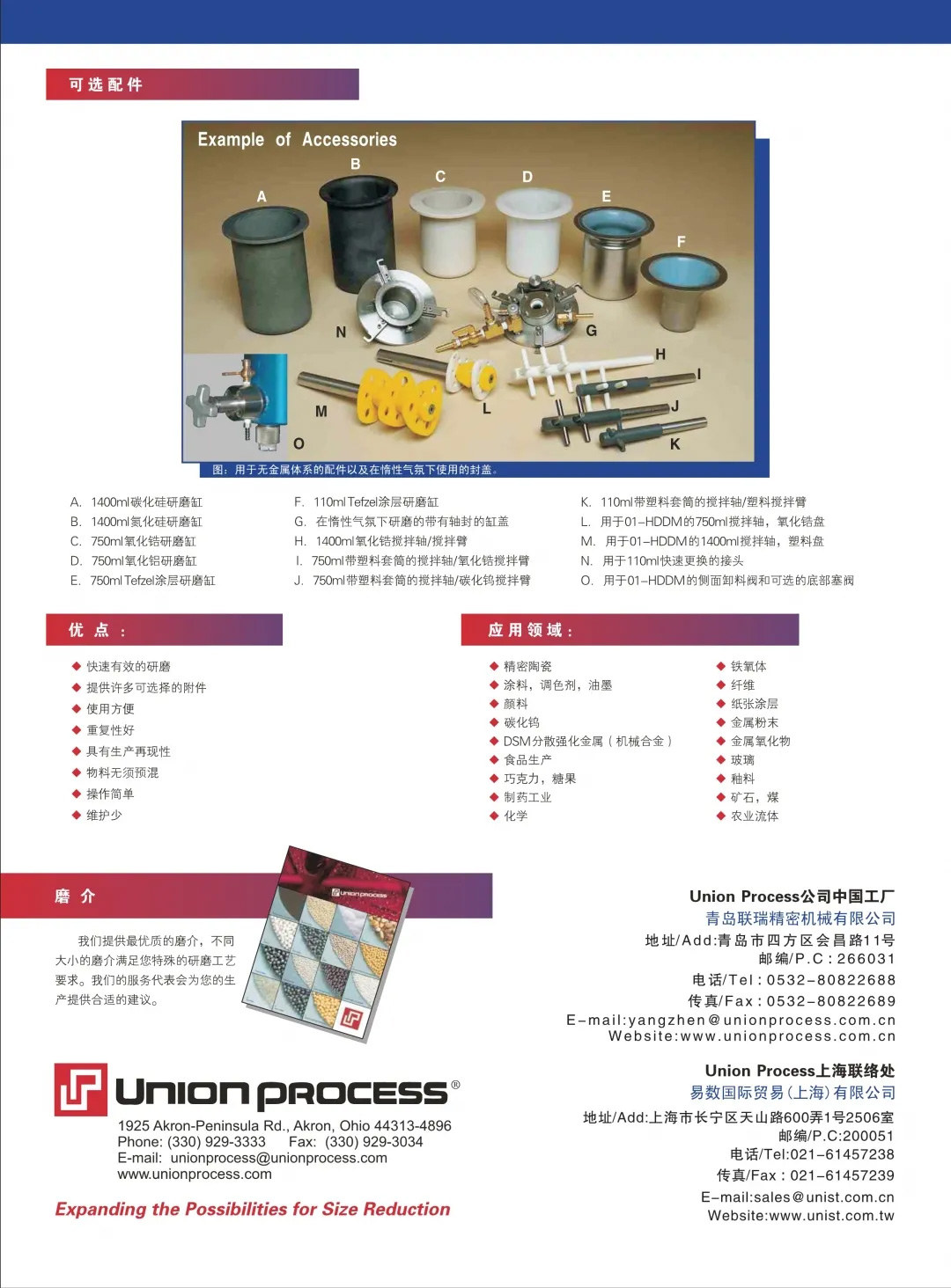 在我們的模型實驗中,對于一些粉末混合物,使用高能球磨機(UnionProcess,01-HD/HDDM)。由于陶瓷(氮化硅、氧化鋯)零件(缸、棒、球)如圖3所示,該設(shè)備允許更高的轉(zhuǎn)速和無污染的混合過程。