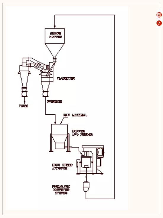 空氣分級機或篩網(wǎng)可與SD或HSA攪拌磨相結合,形成一個封閉的研磨過程循環(huán)。通過不斷取出細粉并重新裝入過大的顆粒,可以實現(xiàn)非常有效的窄分布細磨。(圖7)